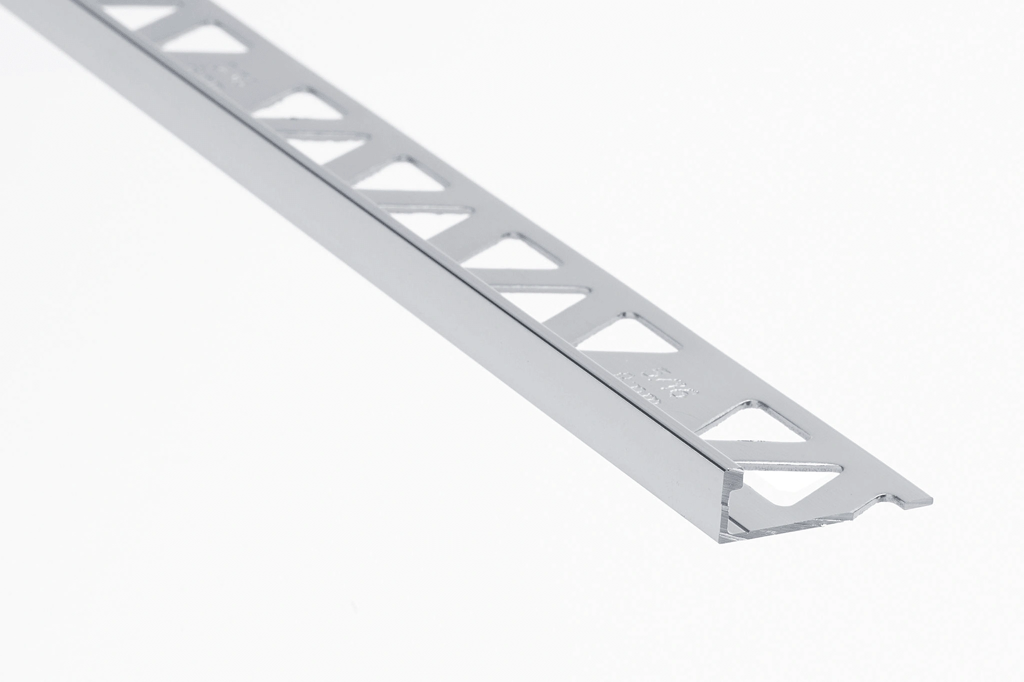 Individual stick of 1/2″ metal flat tile edge in color Bright Clear. 8 feet per stick.