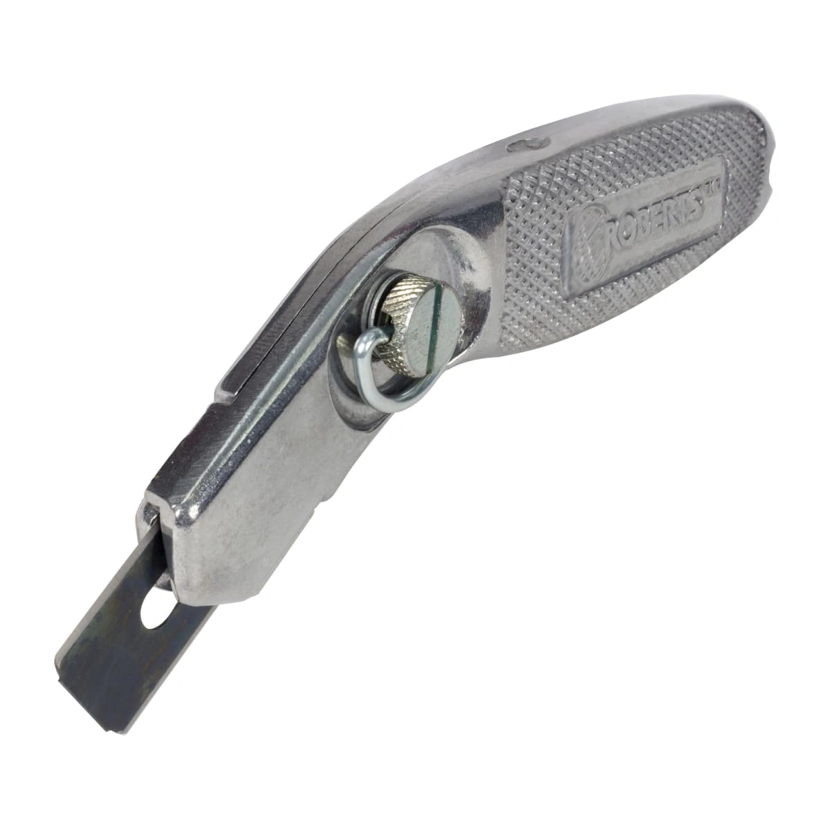 The ROBERTS Razor Blade Carpet Knife quickly cuts carpet during installation. This knife is constructed of die-cast aluminum for lightweight durability. The integrated blade storage and slip-resistant handle for safer cutting makes this carpet knife an easy choice for any carpet installer.